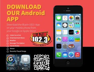 Download the Blazin 102.3 Android App to your mobile phone from your Google or Apple App Store!! Listen live at work & on the go!